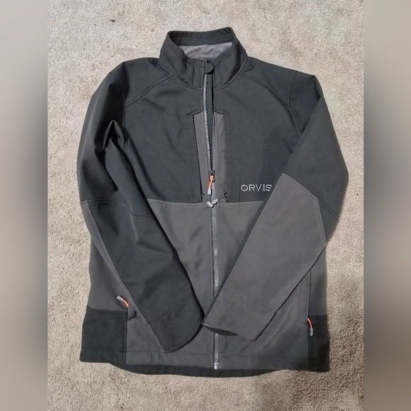 Excellent used condition Orvis Pro size medium softshell jacket. No snags, zippers all work great.