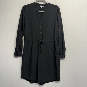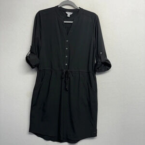 Orvis Pack & Go Travel Dress Black Roll Tab Sleeve Mini Tie Waist Wrinkle Resist