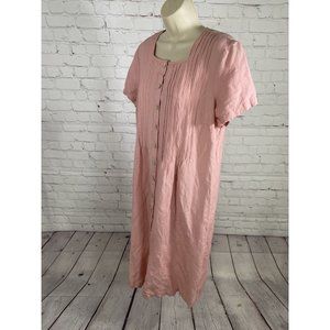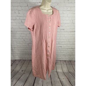 Orvis Pale Pink Oyster Shell Button Linen Blend Pleated Petites Dress Large PL