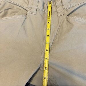 Orvis Tagged 32x30 ACTUAL Estimated Measurements:32x23, hemmed for a young adult , Tan Brown Missouri Breaks Upland Game Field Pants. Made of spandex and cotton canvas fabric, these solid beige pants feature a zip closure, flat front, and straight leg style. With a mid-rise waist and 23-inch inseam, these khaki-style pants are designed for a regular fit. The design of the pants includes brand logo accents and pockets, making them ideal for outdoor activities such as hunting and nature exploration.