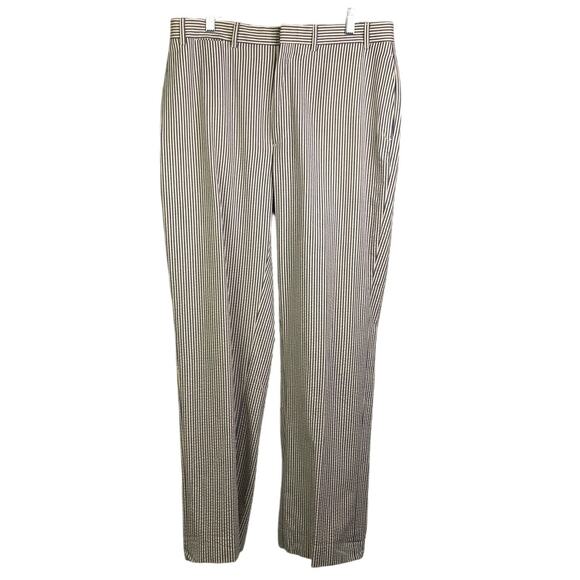 Orvis Pants Mens Size 34 Cream/slate Blue Seersucker Straight Cut Flat Front