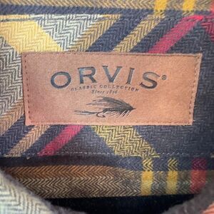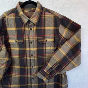 Orvis Plaid Flannel Button Up Shirt Mens XL Brown Heavyweight Pockets Workwear