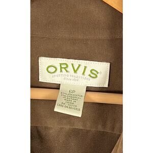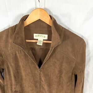 Orvis Poly Blend Soft Bomber Jacket Full Zip Mock Collar Brown Women's sz 6P