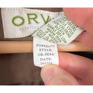 Orvis full zip bomber style jacket. Poly blend soft material, unlined, lightweight, drawstring hem, zip slash pockets, elastic cuffs.