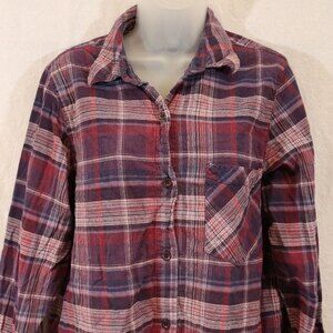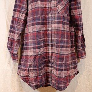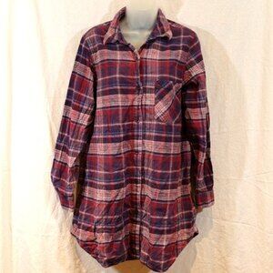 Orvis Purple Plaid Button Up Tunic Dress Medium Cotton Western Rustic Shirt