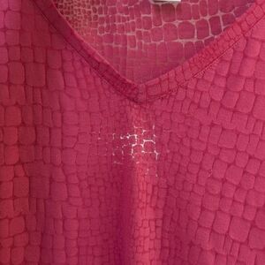 Orvis V-neck tunic in a rich raspberry hue. Subtle all-over textured grid pattern. Three-quarter sleeves with a relaxed silhouette. Great condition, zero stains. Clean steamed and ready to go! Orvis is amazing quality and the ONLY reason I am parting ways is due to weight gain that I have tried extremely hard to lose!