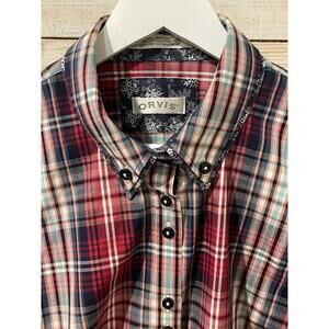 Orvis Red Plaid Button up Shirt With Double Collar and Flip Cuff Women's size 12