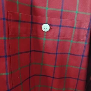 holiday plaid shirt, Christmas red green plaid, festive casual shirt, winter cabin core style, classic American heritage, preppy holiday outfit, rustic lodgewear, cozy winter layering, timeless plaid button down, men’s size large shirt