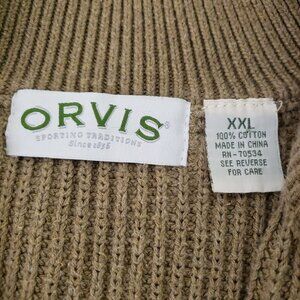 Orvis Mens 100% Cotton Brown Ribbed Elbow Patches Quarter Zip Sweater Sz XXL
