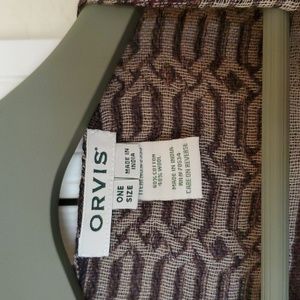 NWOT Gorgeous Orvis ruana in perfect condition- never worn. Lightweight Cotton/wool blend is perfect for chilly Fall days and nights. Beautiful pattern in lovely brown hues. One size fits most.