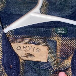 Orvis Shacket Men XL Blue Plaid Button Up Heavy Flannel Shirt Jacket Pocket