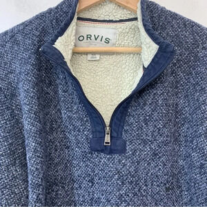 Orvis Sherpa Lined Sweater Men Medium 1/4 Zip Blue Sweatshirt Heavy Casual