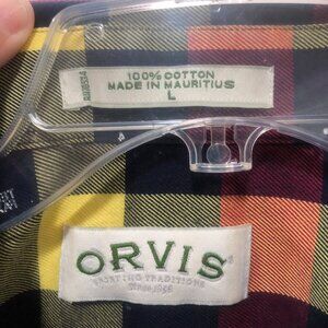 Orvis Shirt Men L Check Long Sleeve Button Front Button Pocket 100% Wrinkle Free