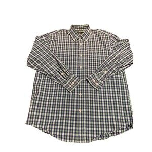 Orvis Shirt Men Large Blue Green Check Heritage Wash Long Sleeve Button Down