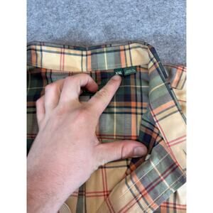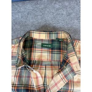 Orvis Shirt Mens 2XL Beige Green Plaid Flannel Button Up Long Sleeve Workwear
