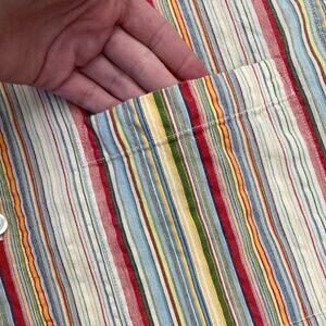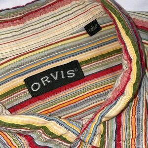 Orvis Shirt Men's Large Striped 100% Cotton Button Up Short Sleeve Made in India