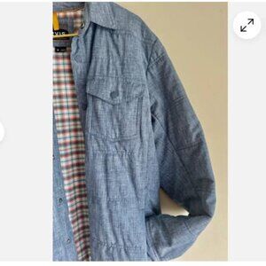 Orvis Shirt Mens Med Blue Fit Tech Chambray Lined Shirt /jacket Up Outdoor