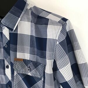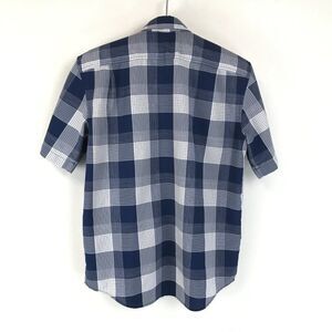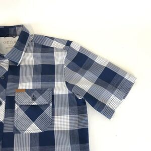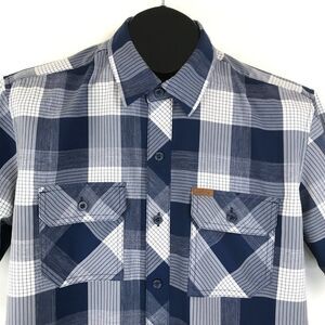 Orvis Shirt Men's Medium 100% Polyester Blue Plaid Short Sleeve Button Up