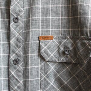 Orvis Shirt Mens Size XXL 2XL Gray Plaid Check Short Sleeves Button Up