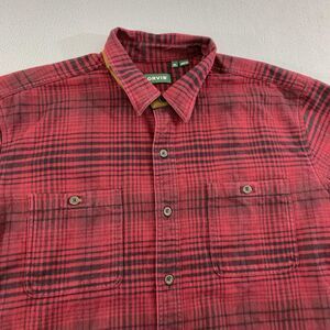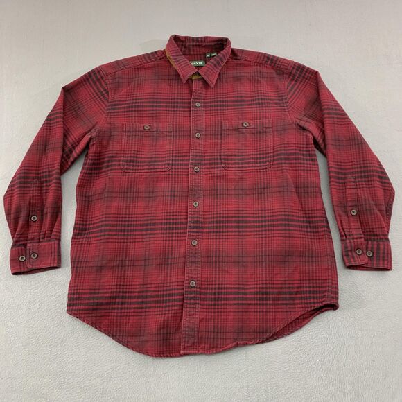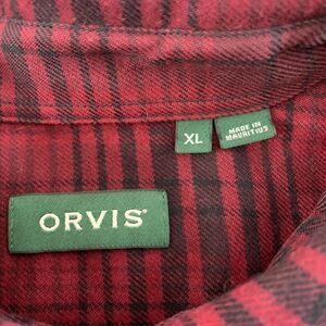 Orvis Shirt Mens XL Red Black Plaid Flannel Button Front Long Sleeve Two Pocket