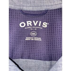 Orvis Shirt Mens XXL Blue Button Up Short Sleeve Pockets Logo Outdoor Casual