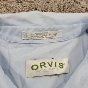 Orvis Shirt Women’s 14 Blue Button Up Shirt Short Sleeve Casual Lightweight. A couple tiny marks
