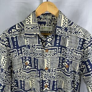 Great condition! Orvis Short Sleeve 100% Cotton Button Up Pattern Shirt Men's Size Medium