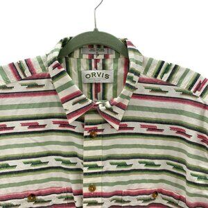 Orvis Short Sleeve Button Front Red/Green Shirt Men's Size XL