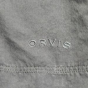 Features classic Orvis embroidered logo at front hem and signature orange stitching details.