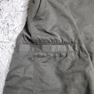 Condition: Gently worn, no visible flaws noted. These are a green color but look gray from some angles. All pockets, zippers, and buttons in working order.
