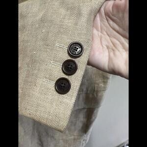 Orvis Signature 42T beige / tan 100% linen herringbone sport coat blazer 2 btn