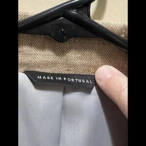Elevate your style with this sophisticated Orvis Signature sport coat blazer. The beige/tan herringbone pattern adds a touch of texture and character to any outfit. The jacket features a two-button front and three-button sleeve button style. It is made of a blend of polyester and linen, ensuring comfort and breathability. The double-vented jacket also includes a notch lapel style, making it perfect for any occasion, whether it's a formal business meeting or a summer wedding. This blazer is designed for the modern man who wants to look his best.
