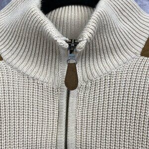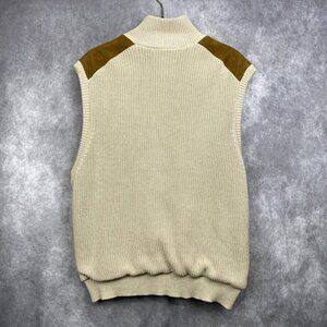 Orvis Signature Beige Knit Zip Sweater Vest W/Tan Faux Suede Patches Men's “L”