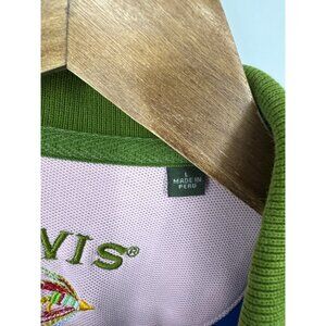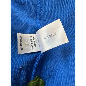 Crafted from 100% cotton, this polo shirt features a striking combination of vibrant blue, pink accents, and a green collar. Ideal for everyday wear.