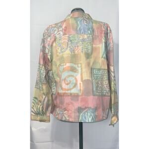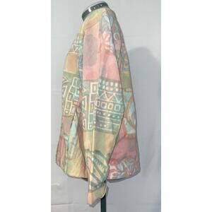 The Orvis Size L Funky Pastels Cotton Short Jacket Blazer is a stylish and versatile piece for women, made of 100% cotton with an abstract pattern in multicolor. This short jacket features long sleeves, button closure, and pockets, making it perfect for casual or business occasions. The regular fit and all seasons features of this jacket from Orvis make it a wardrobe essential in a vibrant and fun style.