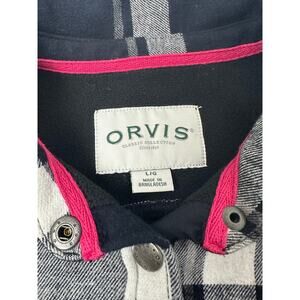 Orvis Size Large Women's Fleece-Lined Flannel Shirt Jacket Black White Buffalo