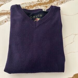 Elevate your wardrobe with this luxurious Orvis sweater, crafted from 100% Merino wool. The classic V-neck design and rich purple hue make it a versatile piece for any occasion.