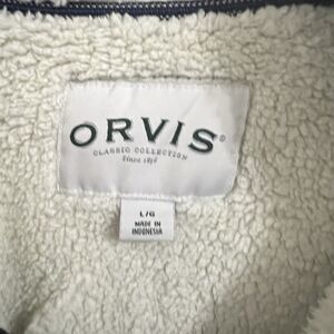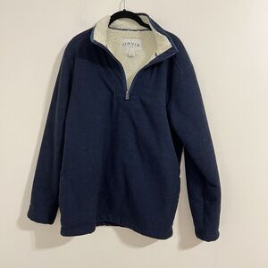 Orvis Sweater Men's L Blue Pullover Sherpa Fleece Lined 1/4 Zip Thick Heavy