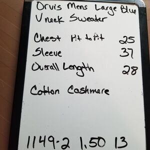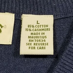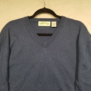Orvis Sweater Mens Large Slate Blue V Neck Pullover Cotton Cashmere Blend