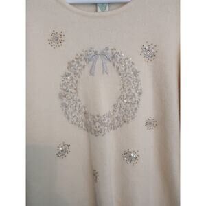 Orvis Sweater Women Large Off White Christmas Wreath Holiday Soft Cozy Festive