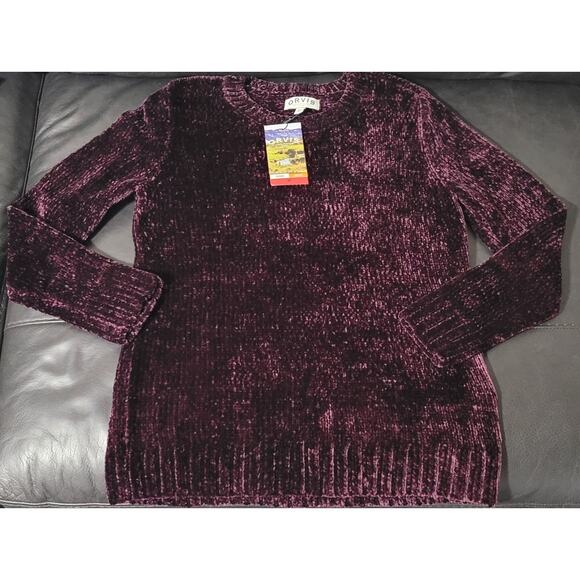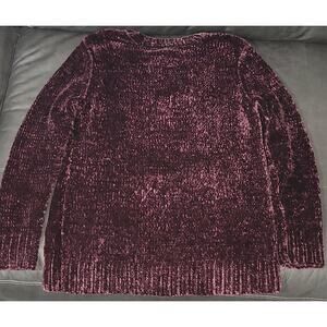 Orvis Sweater Women Sz. M Chenille Ribbed Tunic Length Plum Purple Cozy/Relaxed