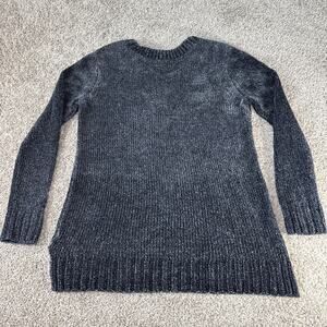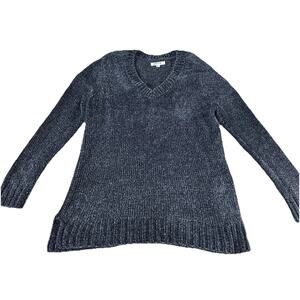Orvis Sweater Womens Large Blue Chenille Velvet Soft Pullover Knit V Neck