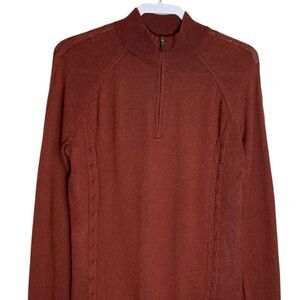 Orvis Sweater Womens M 1/4 Zip 100% Merino Wool Cable Knit Lightweight Preppy