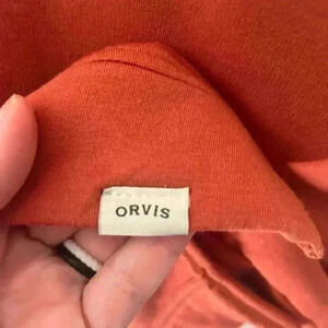 Super soft comfy Orvis burnt orange/clay colored v neck pullover. Size M.