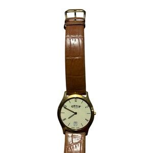 Orvis Swiss Made Genuine Leather Water Resistant Stainless Steel Mens Watch