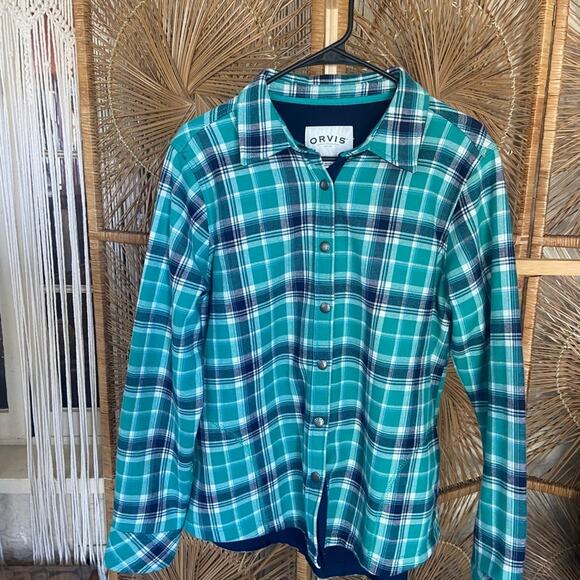 Orvis Teal Plaid Fleece Lined Flannel Shirt (B)