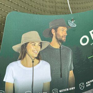 Lightweight olive outdoor tech hat with adjustable fit, foldable packable design, secured pocket, and UPF 50+ sun protection. Includes quick-dry material for water activities.