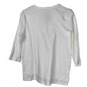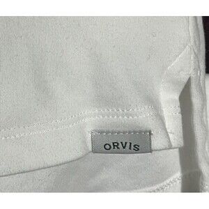 Orvis Top White Classic T-Shirt V-Neck 3/4 Elbow Sleeves Longer Back Side Slits Logo Pullover Tee