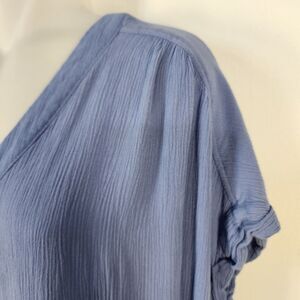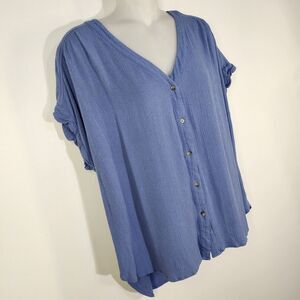 Orvis Top Womens Size Large Button Front Relaxed Fit Woven Crepe Blue V Neck