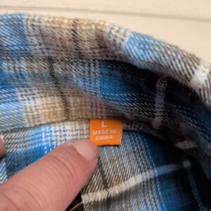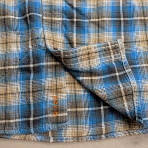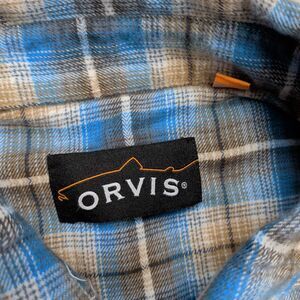 Orvis Trout Bum Shirt Mens L Blue Flannel Plaid Long Sleeve Cotton Nylon Cordura